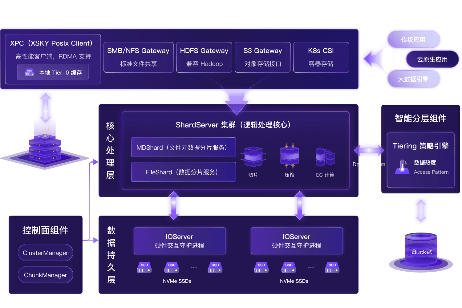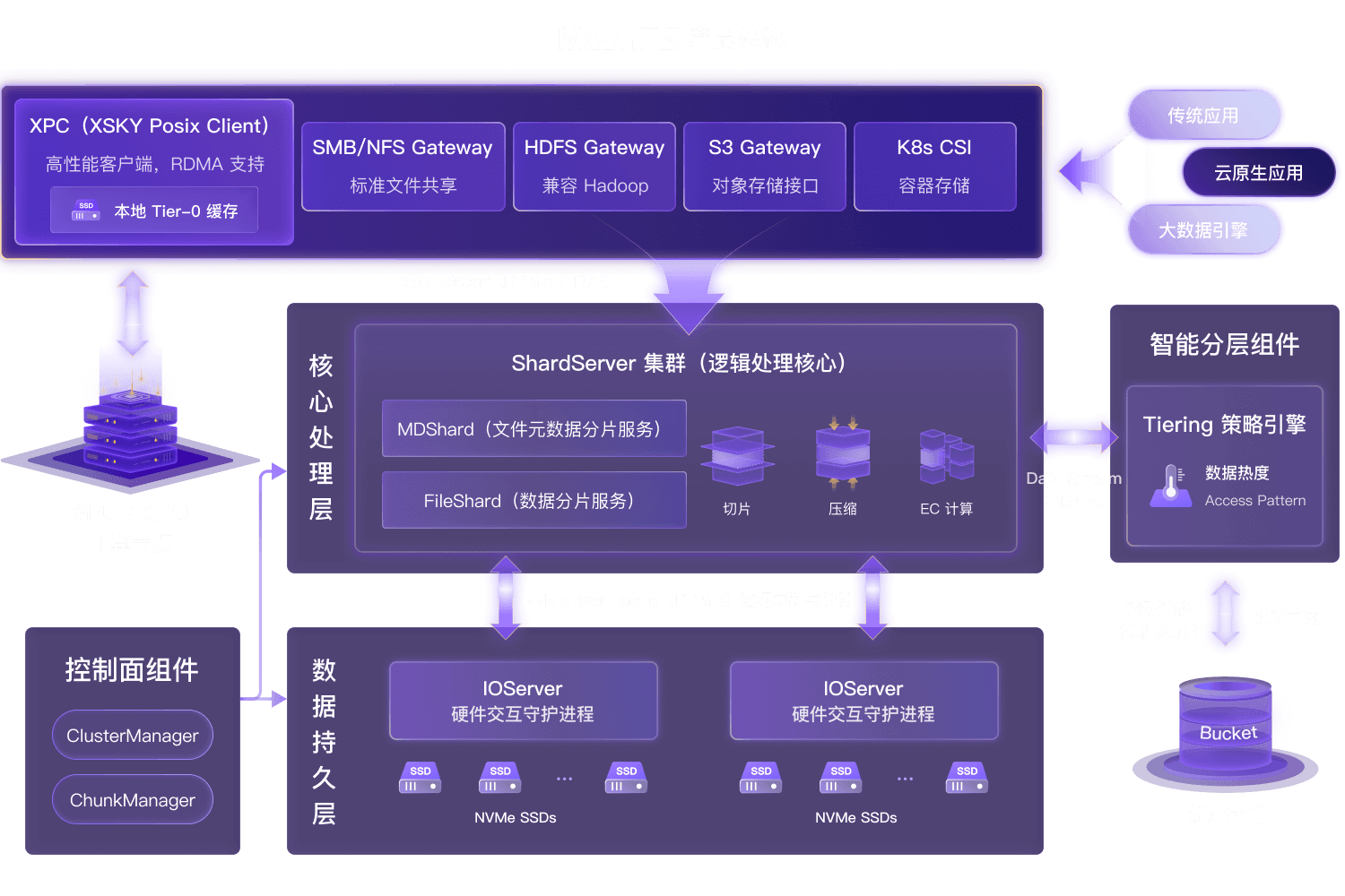 Tier-0 缓存层瞬间吸收大流量,后台异步刷盘,将 GPU 等待时间压至秒级。